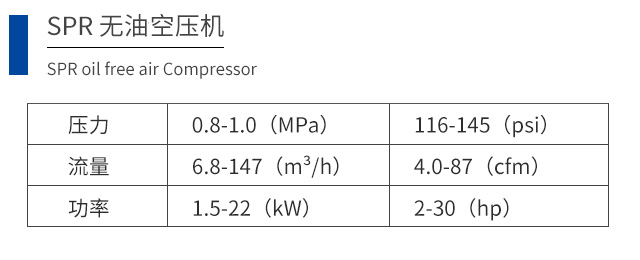 ● 無油空壓機力范圍:8 至 10bar
